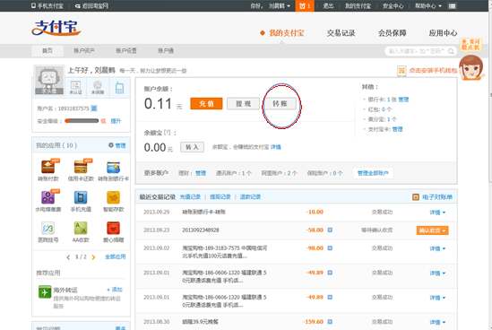 (2)在我的支付寶頁面 選擇 【轉(zhuǎn)賬】