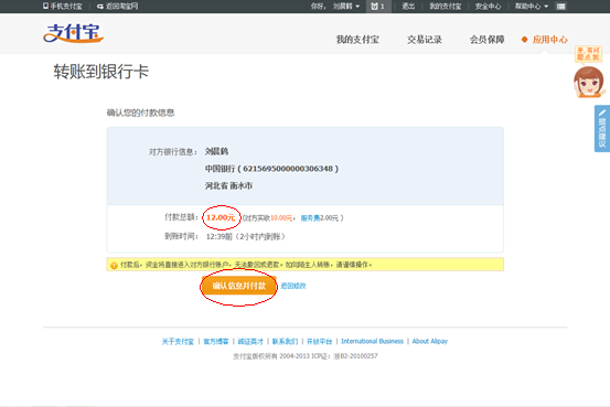 注:付款總額 = 轉(zhuǎn)賬金額 + 轉(zhuǎn)賬手續(xù)費(請客戶仔細核對轉(zhuǎn)賬信息!)