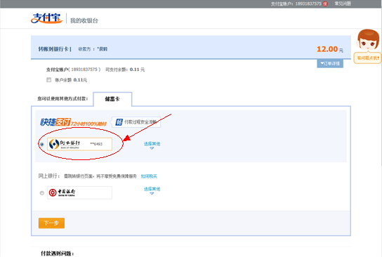 (3)選擇轉(zhuǎn)賬到銀行卡